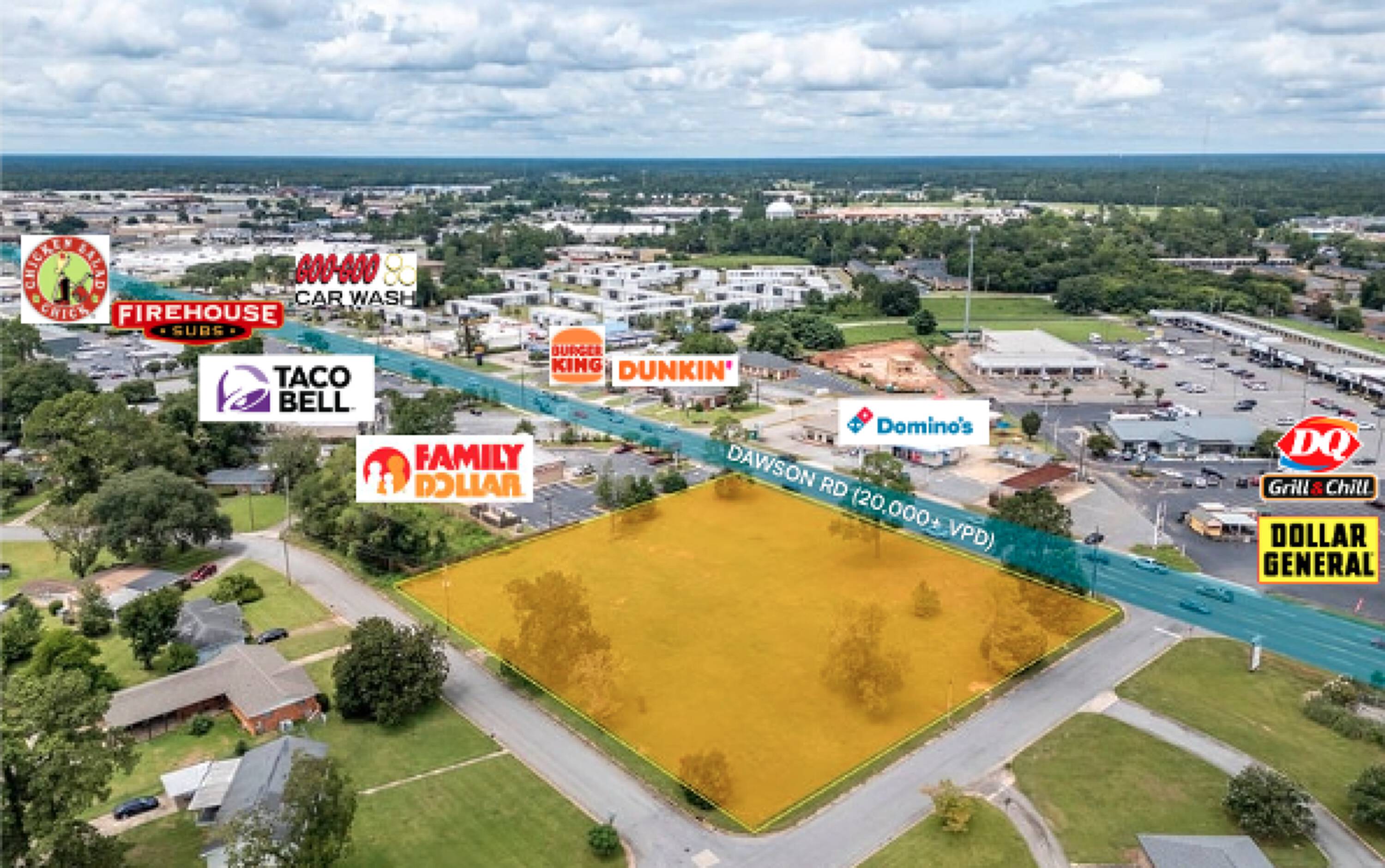 - ±1.75-acre site with 288’ of frontage along Dawson Rd, one of Albany’s highest-traffic corridors.