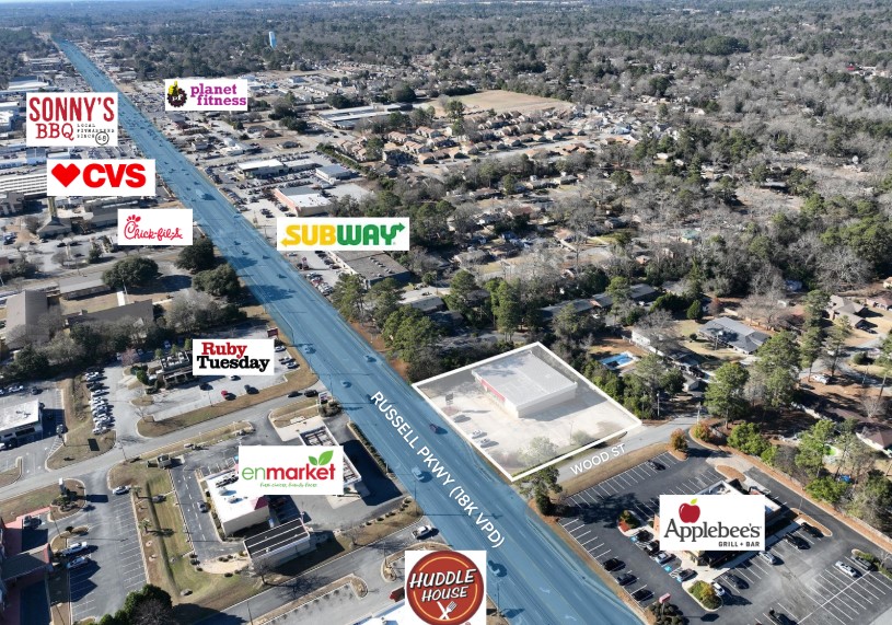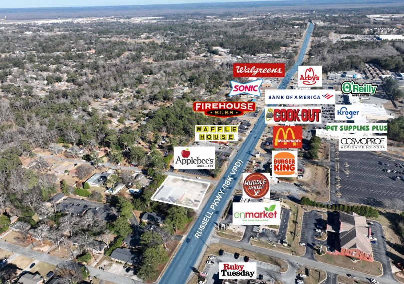 400 Russell Parkway is an approximately 8,075 square foot retail building positioned along Russell Parkway, one of Warner Robins’ primary commercial corridors. The property benefits from direct frontage and full access onto Russell Parkway, a heavily traveled retail artery with 18,000+ vehicles per day, and is surrounded by dense, established retailers including Kroger, Chick-fil-A, Planet Fitness, Walmart, and McDonald’s. The site is also located in close proximity to Robins Air Force Base, one of the largest employers in the state and a major economic driver for the region.